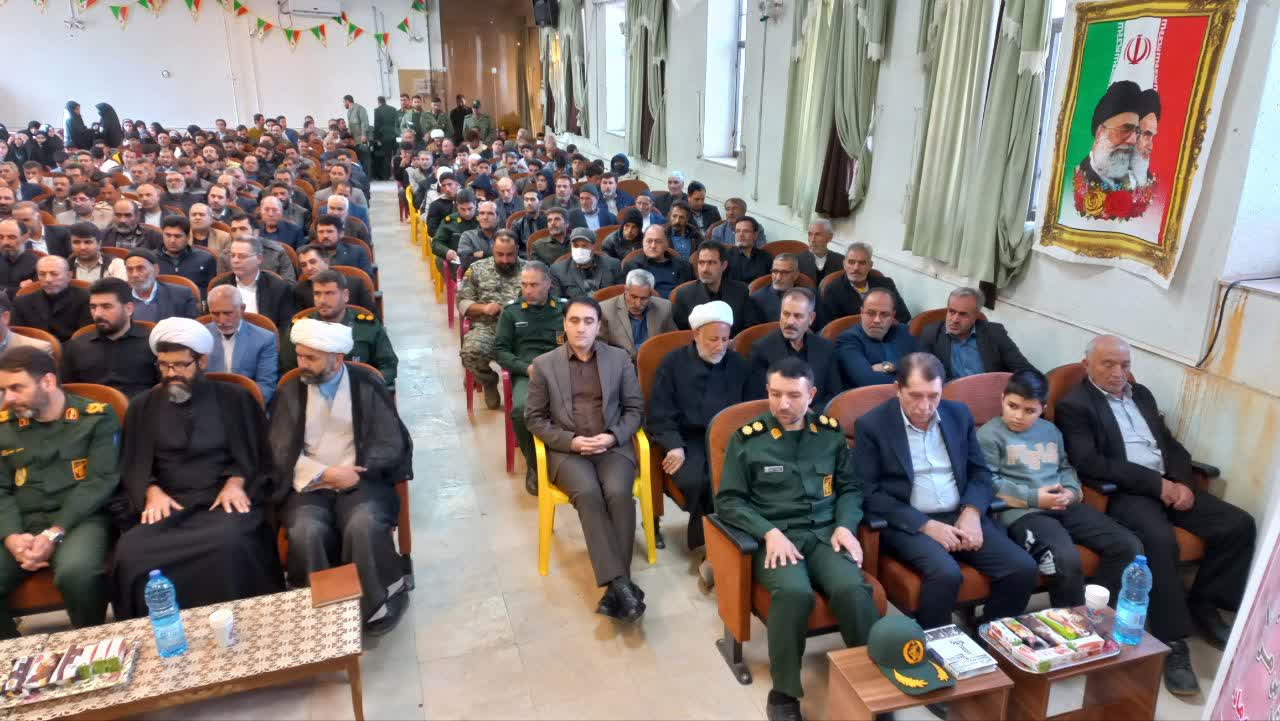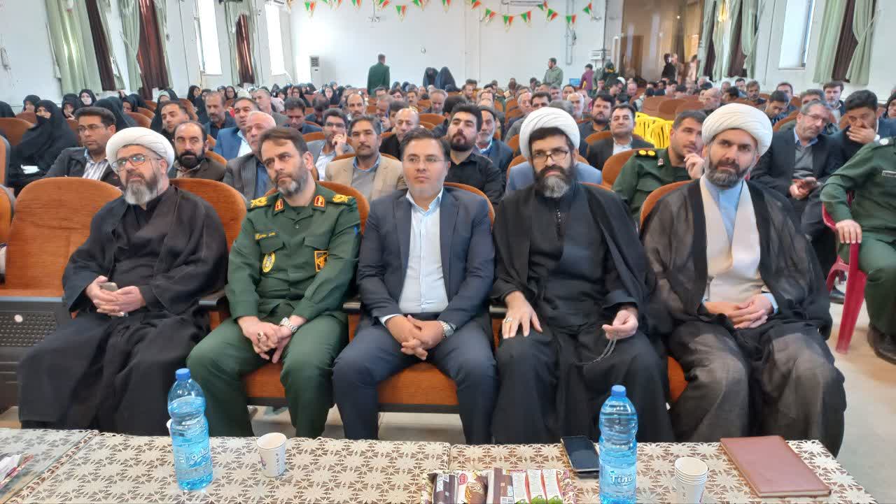 این مراسم با حضور مقامات ارشد استانی و شهرستانی و جمعی از مسئولین، فرماندهان و مردم ولایتمدار شهرستان در سالن شهید آوینی برگزار شد. در این مراسم از تلاشها و خدمات ارزنده جناب سرهنگ خدابنده لو تقدیر و جناب سرهنگ حیدری بعنوان فرمانده ناحیه مقاومت بسیج سپاه ماه نشان معرفی شدند.