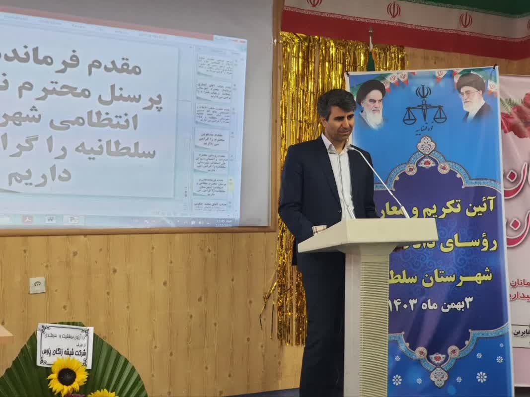 آئین تکریم ومعارفه ریاست حوزه قضایی شهرستان باحضور دکتر انصاری فرماندار سلطانیه ،امام جمعه شهرستان و رییس کل دادگستری استان برگزار شد. در این مراسم از زحمات چگینی رییس سابق حوزه قضایی تقدیر و وحید خلجی در این مسئولیت معرفی گردید