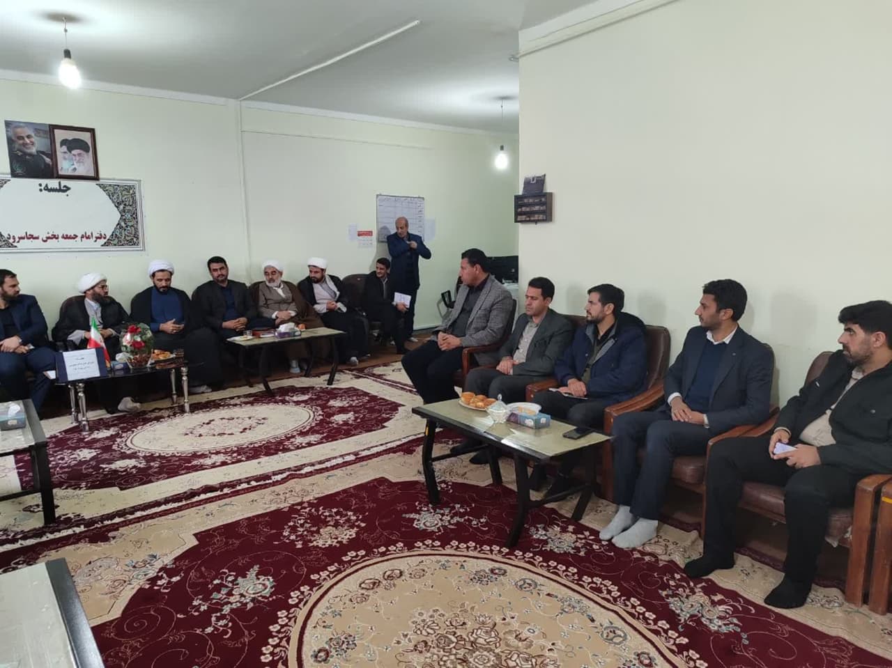 به گزارش روابط عمومی بخشداری سجاسرود: در تاریخ ۲۱ آذر۱۴۰۲ ، با حضور حجت الاسلام و المسلمین حاج آقا اصلانی امام جمعه محترم،آقای بیت اله حقی بخشدار سجاسرود،حجت الاسلام و المسلمین حاج آقا حسینی اصل رئیس حوزه قضایی بخش،آقای جهانشاهلو رئیس اداره ارشاد شهرستان،جناب سرهنگ دشتکی فرمانده انتظامی بخش،جناب سروان افشاری فرمانده حوزه بسیج،خواهر رفیعی فرمانده حوزه بسیج خواهران،رئیس شورای اسلامی شهر و بخش،اعضای شورای اداری بخش واساتید حوزه علمیه امام حسن مجتبی(ع) سجاس در محل دفتر امام جمعه بخش سجاسرود برگزار شد.