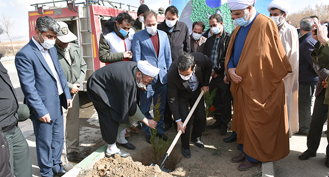 برگزاری مراسم روز درختکاری با حضور امام جمعه، فرماندار و جمعی از مسئولان شهرستان ایجرود در شهر زرین آباد