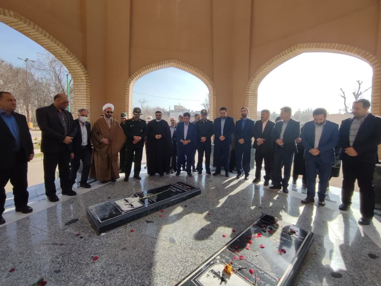 صبح روز شنبه 5 فروردین همزمان با اولین روز کاریمحبی فرماندار محترم شهرستان به همراه اعضا شورای تامین و روسا و مسئولین ادارات با حضور در مزار شهدای گمنام و گلزار شهدا با نثار فاتحه به روح پاک شهیدان با شهدای گرانقدر تجدید میثاق کردند.