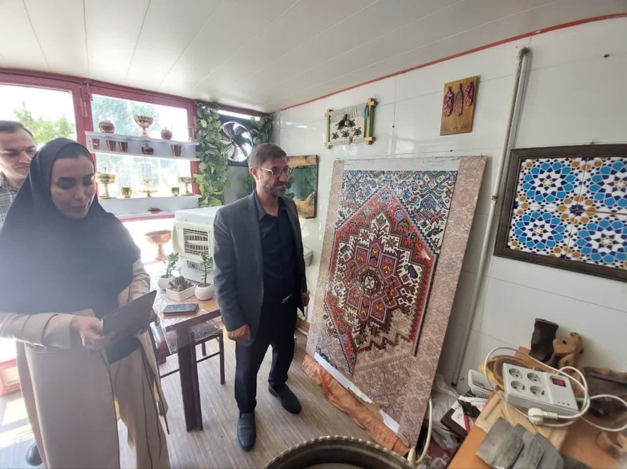 در بازدید مذکور که از کارگاههای تولید محصولات دستساز مددجویان این خیریه به عمل آمد، فرماندار زنجان از نزدیک با توانمندیهای افراد نابینا، ناشنوا و دارای معلولیت که به خلق تابلوهای سفالی، چوبی، معرقکاری، بافت فرش و دیگر صنایع دستی مشغول بودند، آشنا شد.